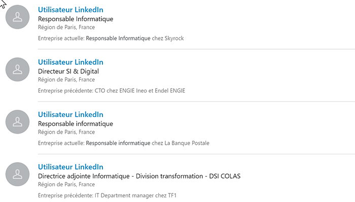 Dans tous les cas, les profils au-delà du rang 3 sont inaccessibles. Ils apparaissent en « utilisateur LinkedIn ».